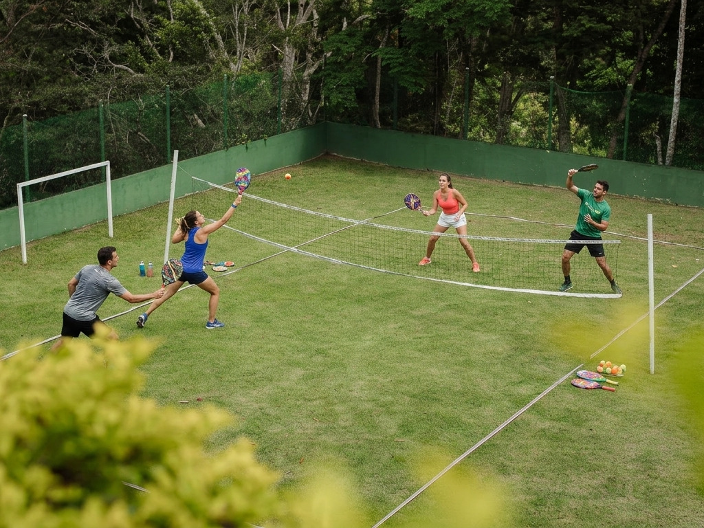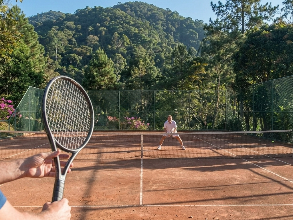 Quadras de saibro e beach tênis no coração da serra. Para quem gosta de movimentar o corpo com estilo — e tem uma desculpa legítima para pedir uma caipirinha gelada no Varandas da Quinta logo depois.